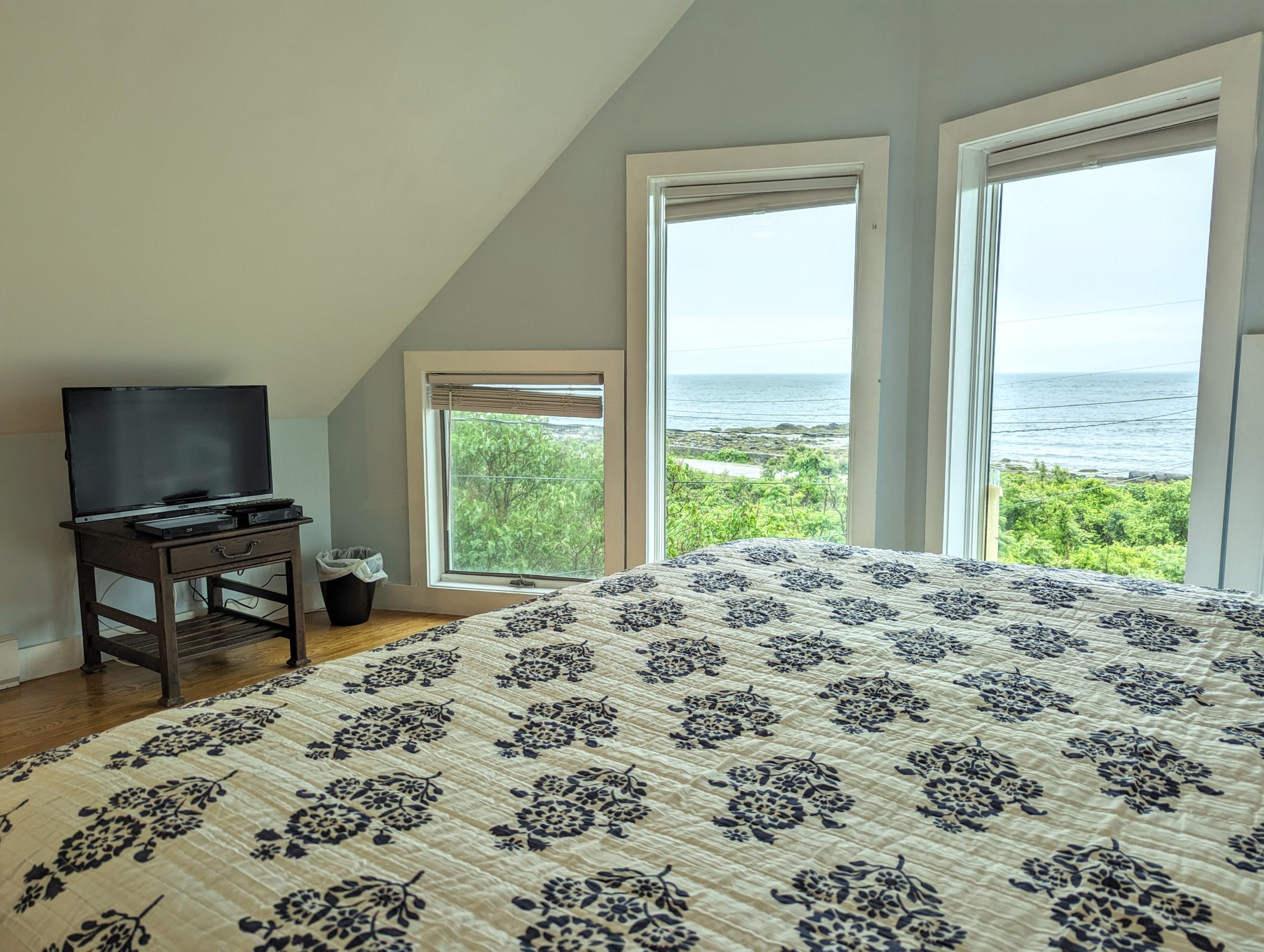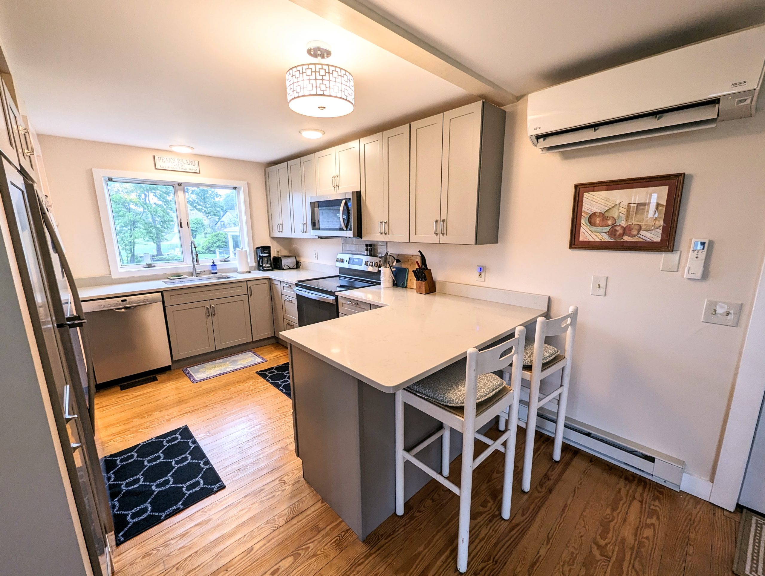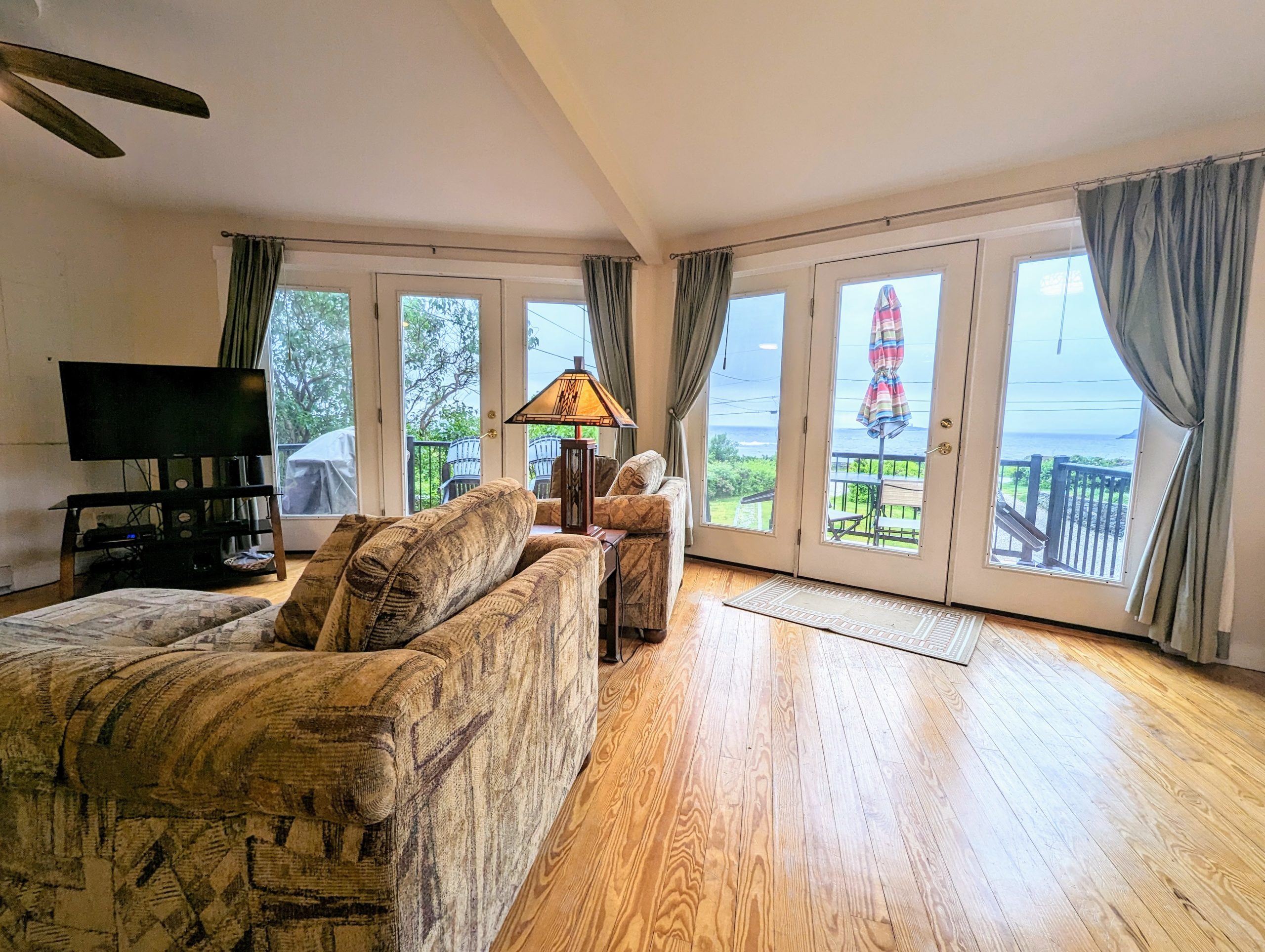 This is a modern home on Peaks’ beloved back shore. It boasts spectacular Southerly views of the ocean, lighthouses and islands. Open, airy first floor with 1/2 bath and laundry room, off the kitchen. Three bedrooms upstairs including a large primary bedroom with a king bed, a queen bed, two singles and a full bath. This house has hardwood floors, newly renovated baths, newly renovated kitchen with new appliances, new washer and dryer and dishwasher. Cable TV/DVD, Internet, small yard, deck w/ umbrella, table and chairs, gas grill. Pet considered w/ non-refundable deposit. Sleeps 6.