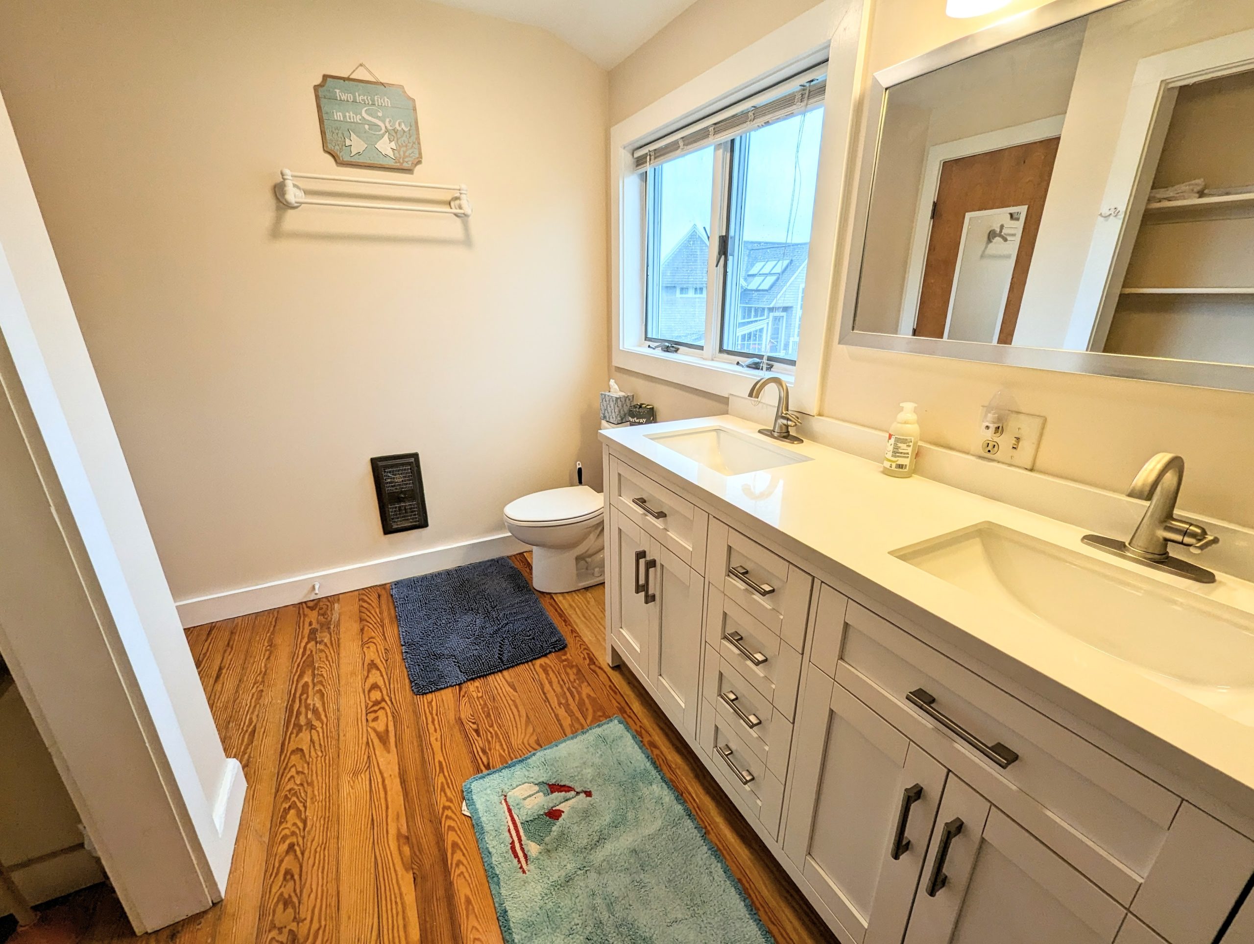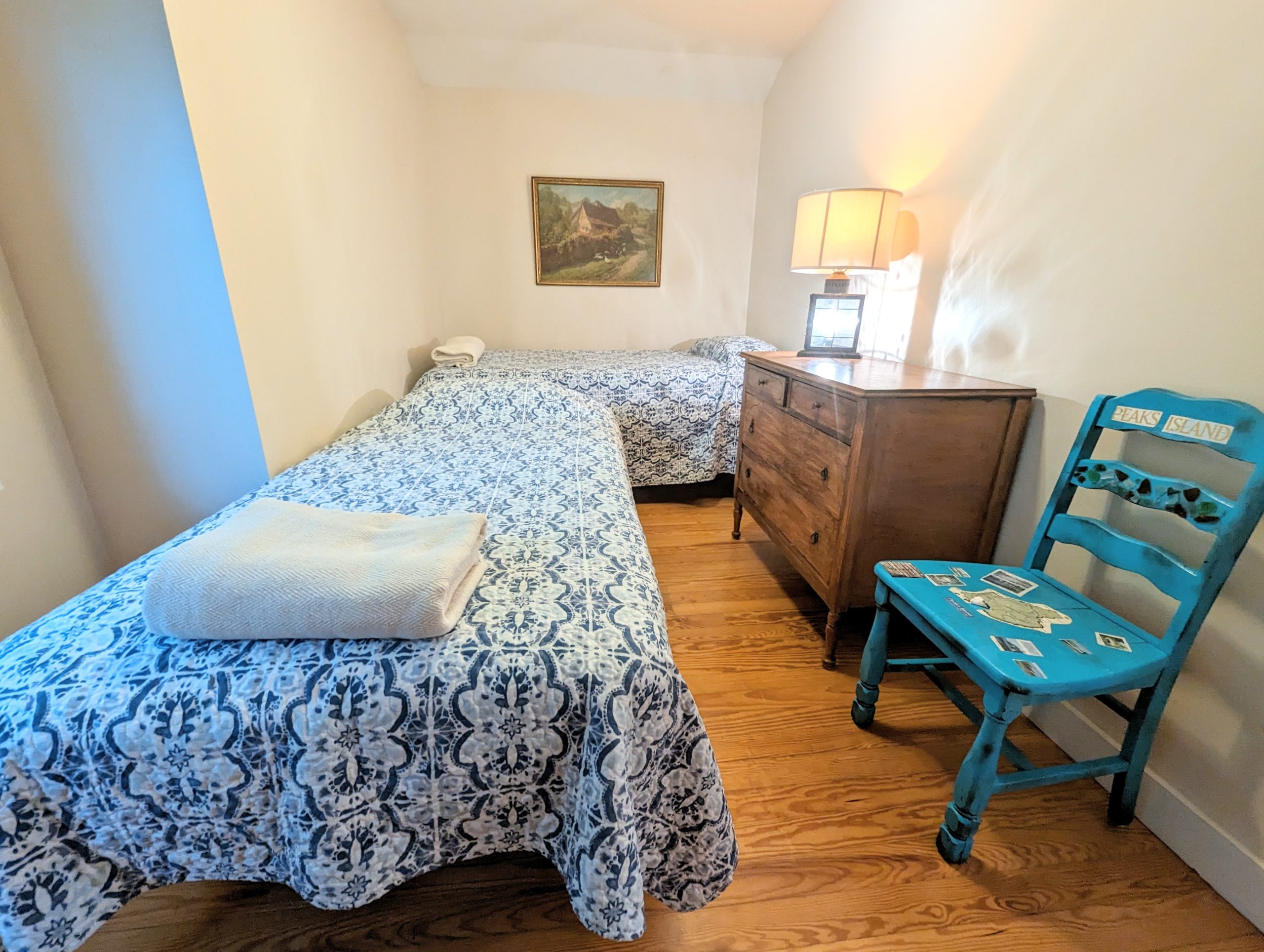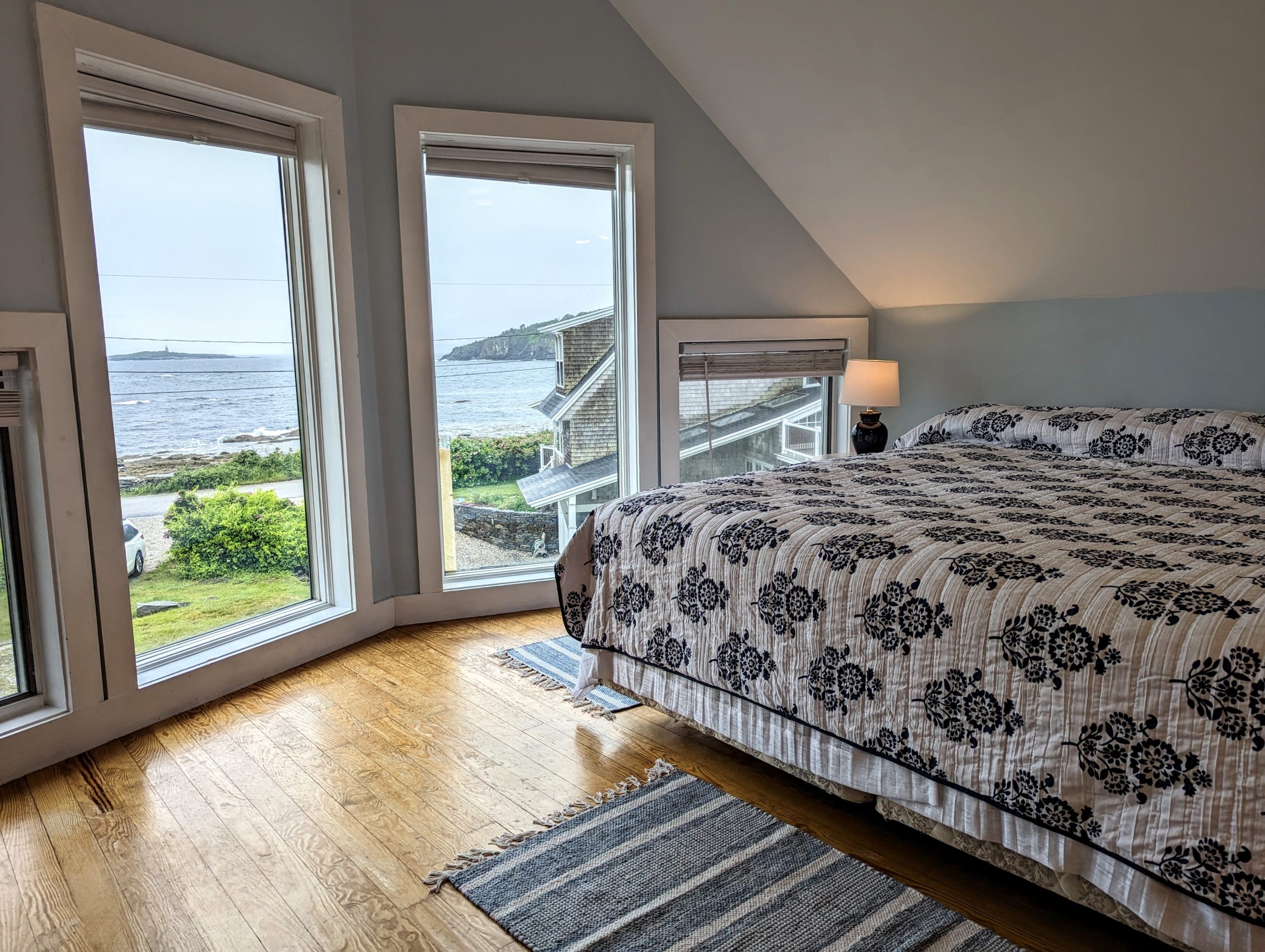 This is a modern home on Peaks’ beloved back shore. It boasts spectacular Southerly views of the ocean, lighthouses and islands. Open, airy first floor with 1/2 bath and laundry room, off the kitchen. Three bedrooms upstairs including a large primary bedroom with a king bed, a queen bed, two singles and a full bath. This house has hardwood floors, newly renovated baths, newly renovated kitchen with new appliances, new washer and dryer and dishwasher. Cable TV/DVD, Internet, small yard, deck w/ umbrella, table and chairs, gas grill. Pet considered w/ non-refundable deposit. Sleeps 6.