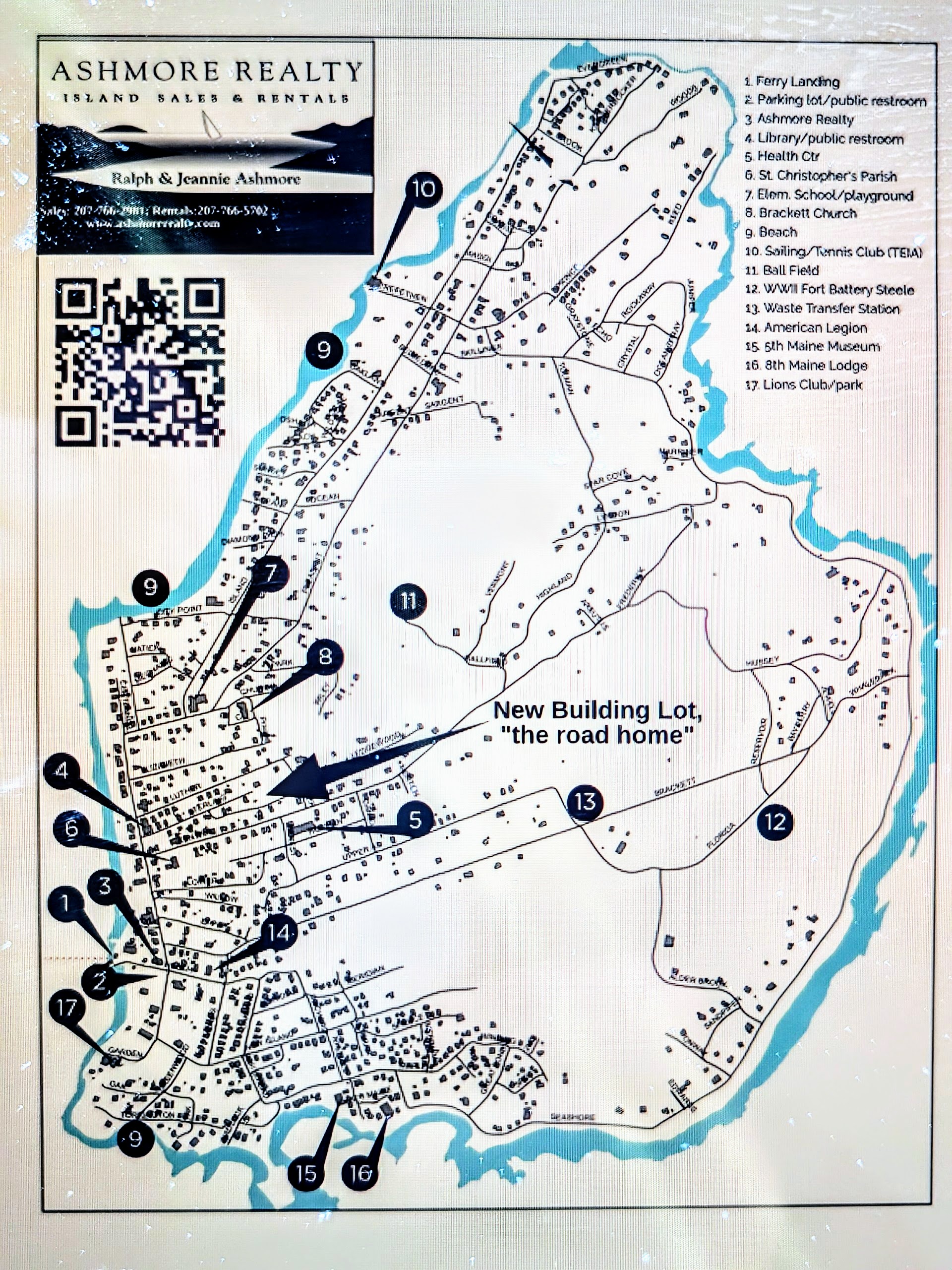 Just Listed: Tucked away in a peaceful village setting is the perfect sized building lot. The land stands proud above its abutters, is partially open with areas filled with hardwood trees. Generally it’s on a level gradient with slight sloping contours and allows for a generous building footprint. It’s located in a precious island neighborhood, off the beaten path and just a short stroll to the ferry landing and island businesses. Much preliminary groundwork has been completed including boundary survey, soils test and waste system design. An excellent opportunity to design and build the home of your choosing and to be part of the wonderful and welcoming community of Peaks Island.